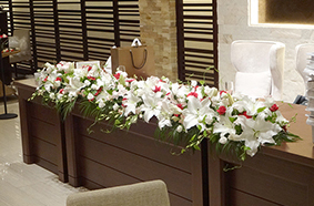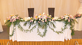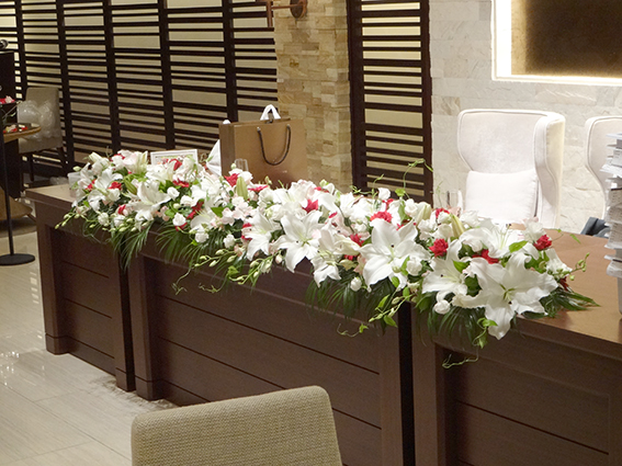 当店は、アキタパークホテル様・ルポールみずほ様の指定納入業者として、婚礼花一式等を納品しておりますが、秋田市内の結婚式場及びホテルなどへは、お客様のご要望により、持ち込み納品もさせて頂いております。